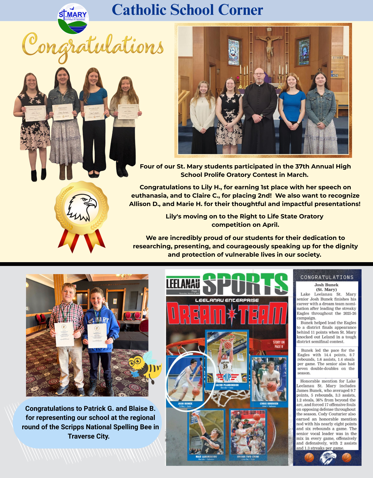 Navigation About About St. Mary School Our Mission / Vision Faculty & Staff Contact Us Careers Our History School Advisory Council Newsletters Catholic School News Admissions Admissions Preschool Admissions Tuition Rates RaiseRight (formerly Scrip) Testimonials Transportation Handbooks FACTS - Parent Login FACTS - Tuition Management Academics Preschool Kindergarten Elementary (1-5) Middle School (6-8) High School Extracurricular Activities Student Services Faith Faith Pastor Our Parish Service Opportunities Participating Parishes Diocese of Gaylord The Roman Vatican Athletics Arts Arts Performing Arts Visual Arts Literature Parents Parents FACTS Family Portal Lunch Menu Hot Lunch Payment Peanut Allergy Information School Communications School Calendar School Committees Giving Giving Endowment Fund Fundraising Guardian Angel Tuition Assistance Program Memorial Gifts Volunteer Opportunities Catholic School News