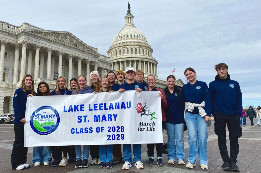 - Students in grades 8-12 rake the St. Mary Cemetery